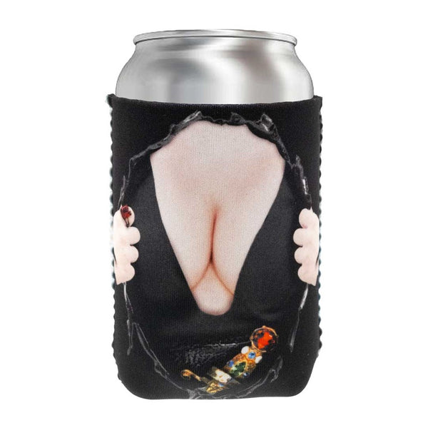 Take your beverage to otherworldly heights with the Elvira Chest Burst 12oz Can Cooler! This can hugger keeps canned drinks cool, and your hands dry. It's made from durable neoprene that not only fits standard 12oz cans, but also keeps drinks cold for longer. And with its easy-to-use design, it's so convenient and simple to take with you on the go. Hand printed and designed in Los Angeles for Elvira's Official Bootique. *Please note this is a seasonal item.