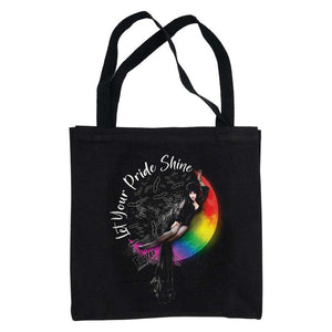 Elvira Chest Burst Rainbow Black Canvas Tote Bag