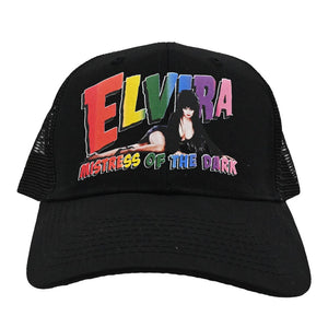 Elvira Lay Down Rainbow Black Trucker Hat