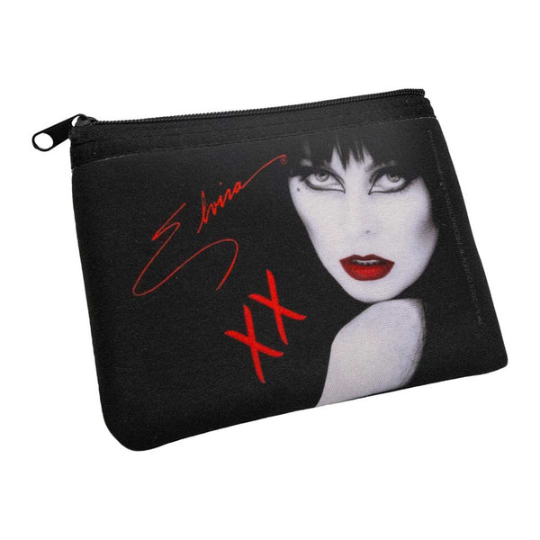 Creep your coins or other ghoulish goodies secure with Elvira's Red Lips Coin Purse. This Creepy coin purse features a sultry Elvira with red lips printed on both sides. Made with a durable neoprene and zipper closure. Size approx 4.7" (12cm) x 3" (7.8cm). Hand printed and designed in Los Angeles for Elvira's Official Bootique.